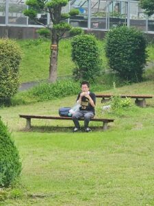 最近はいろんな場所で寝るようになったそうです!!オフの日にいろんな公園に行って芝生の上で寝ていたり、練習直後に部屋で寝ていたりしてます!寝転んでいると落ち着くんだそうです!特に寝ながら見るは格別でいろんな人にみてもらいたいです!